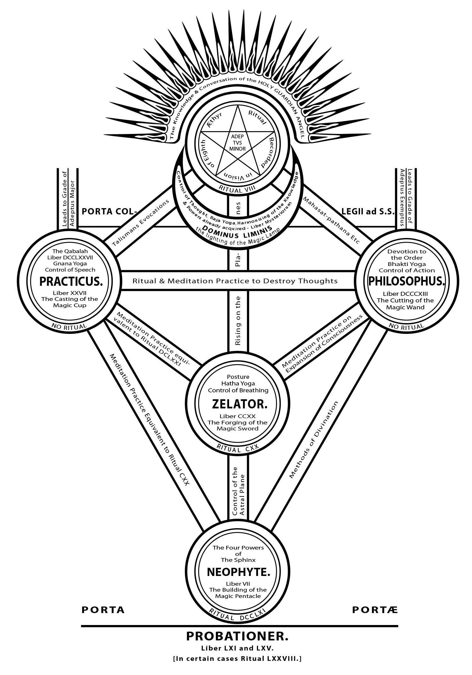 No ritual admits to the grade of Practicus, which is conferred by authority when the task of the Zelator is accomplished.